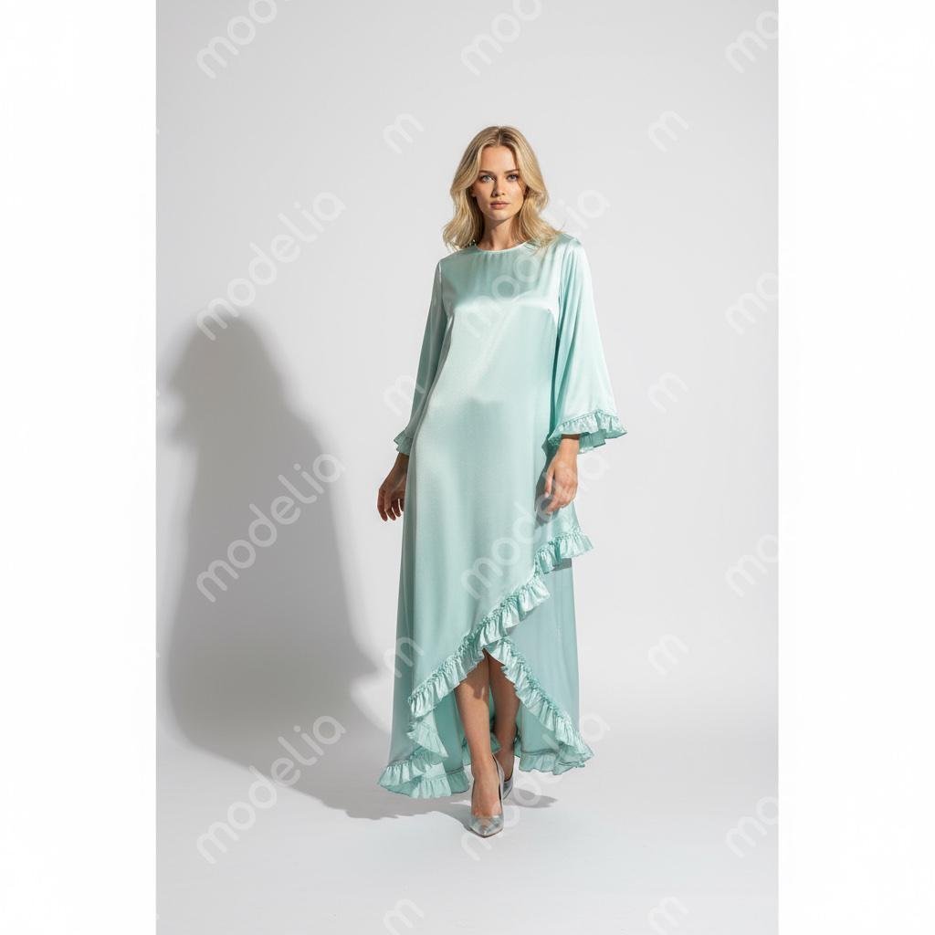 Satin shirt with diagonal flowy bottom